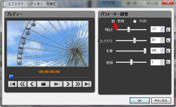 従来の「色相」に加え、「RGB」(赤・緑・青)での調整が可能になりました。