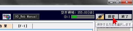 形式ですが、HDVのサイズはWeb 用途には少々大きすぎます。YouTube などに高画質でアップロードしたいのであれば、ファイルの種類はMpeg-2が良いでしょう。画質はインターネットとしては高画質な部類に入るし、ファイルサイズはHDVの65%くらいに節約できます。HD のなかでも比較的軽いからアップロードも楽です。(DV(4:3)モードで編集している場合でも操作は同じです。自動的にDVサイズで出力されます)