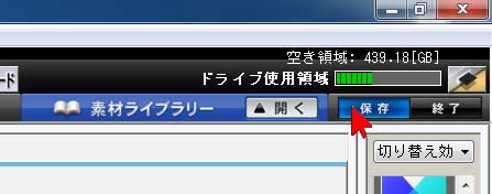 まず、ビデオキャンバスから完成作品をファイルとして書き出します。ビデオキャンバスを起動し、完成作品を開き、ビデオキャンバスの画面右上にある「保存」をクリックします。