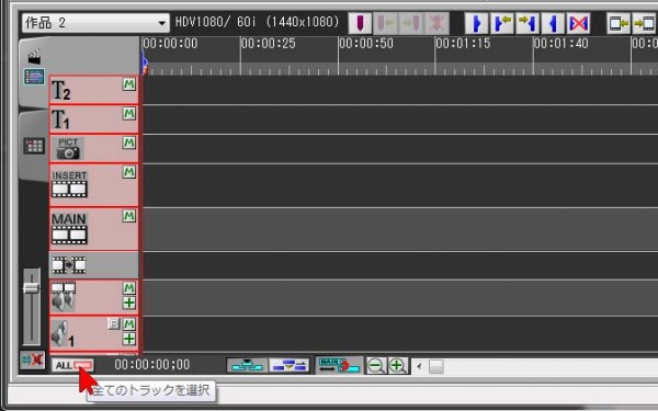 画面左下にある「ALL」ボタンをクリックします。すべてのトラックセレクターが赤くなります。