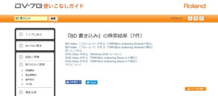 メニューバーの一番上に表示されている「検索バー」にキーワードを入力して検索します。下図では、「BD」と「書き込み」の2つのキーワードで検索しています。「BD」と「書き込み」の間は半角スペースで開けて打ち込んでください。右側に検索結果が表示されますので、検索結果をクリックしてページを開いてください。